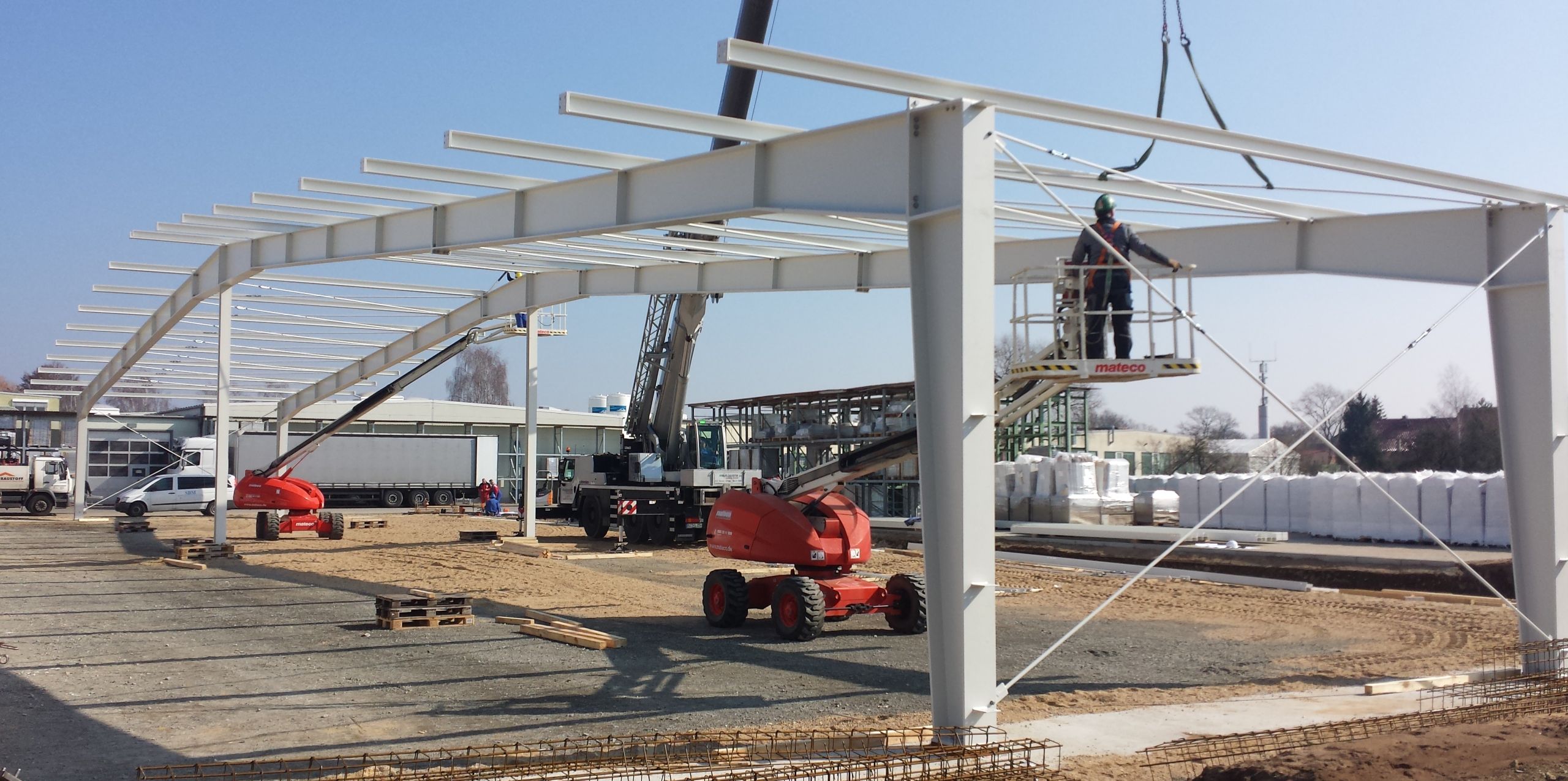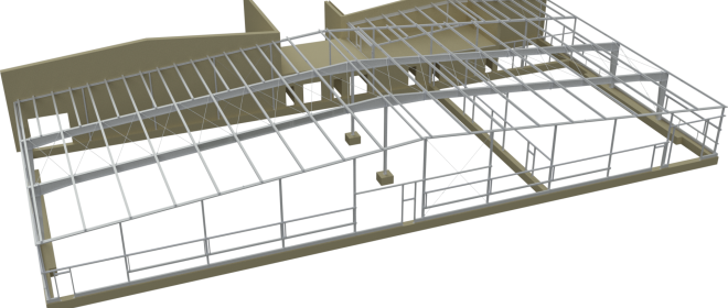 Eine Besonderheit liegt hier in der Hallenrahmenausrichtung.