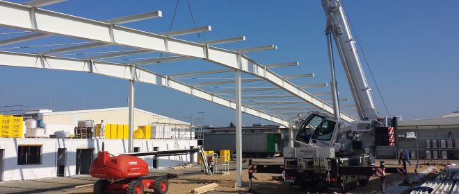 Für die Übernahme und den Aufbau einer neuen Produktionslinie wurde eine neue Montagehalle mit Sozialeinbau geschaffen.