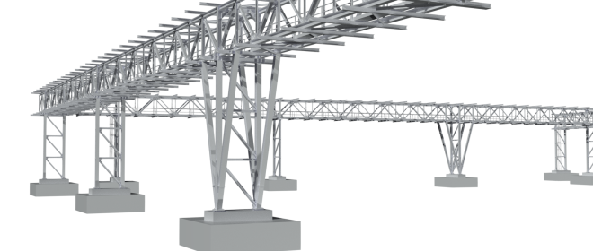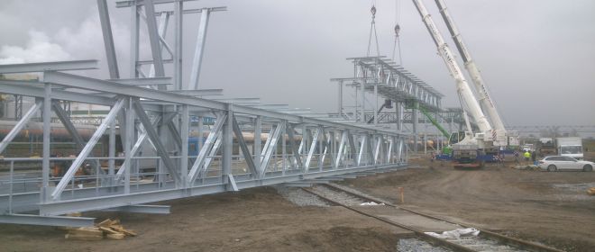 Bei den geplanten Baumaßnahmen handelt es sich um eine Rohrbrücke zur Aufnahme von Rohrleitungen und Kabeln für ein Stickstoffwerk.